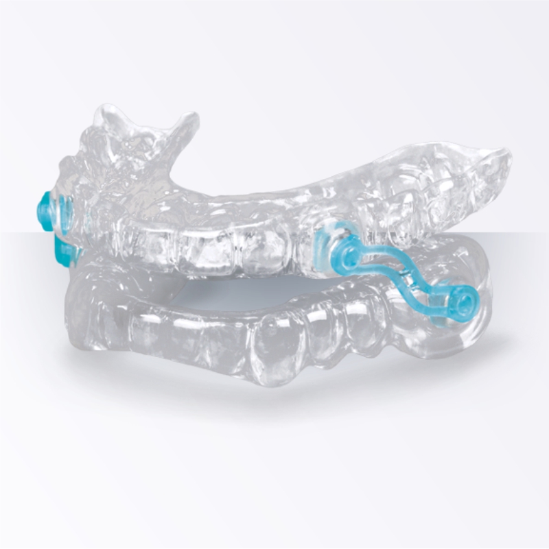 Gently advances the jaw and tongue base to instantly open collapsed airways, reducing turbulence and vibrations—stopping snoring/apnea at the source.